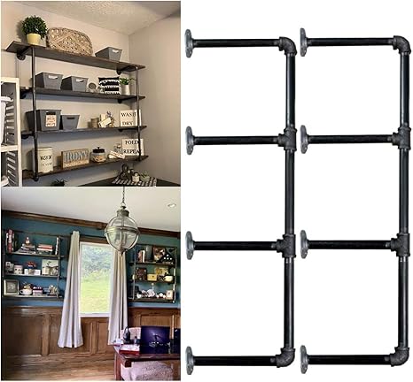 Amazon Com Industrial Retro Wall Mount Iron Pipe Shelf Diy Open Bookshelf Hung Bracket Diy Storage Shelving Home Improvement Kitchen Shelves Tool Utility Shelves Office Shelves Bookshelves And Bookcases 2pcs Furniture Decor