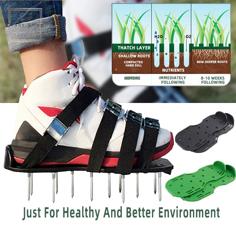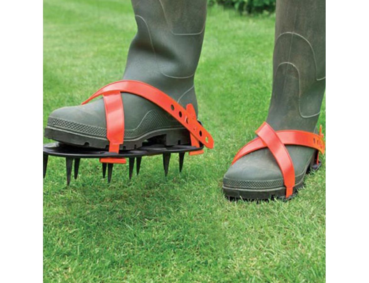 Spiked shoes dont work because they impact too small an area and further compact already compacted soil notes BioAdvanced a company that focuses on science-based solutions for lawn care. Lawn Spike Shoes Spikes Lawn Aerator Spike Shoes - Heavy Duty Steel Spikes Adjustable Straps Zinc Alloy Buckles With Wrench And Bonus Spare Parts. If your soil is especially wet or sticky you may strip off the top layer of soil when you lift your foot too There are two reasons.